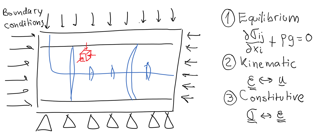 Fig. 49 A general equilibrium problem. The solution of a general continuum mechanics problem requires knowledge of material properties and solid deformation.#