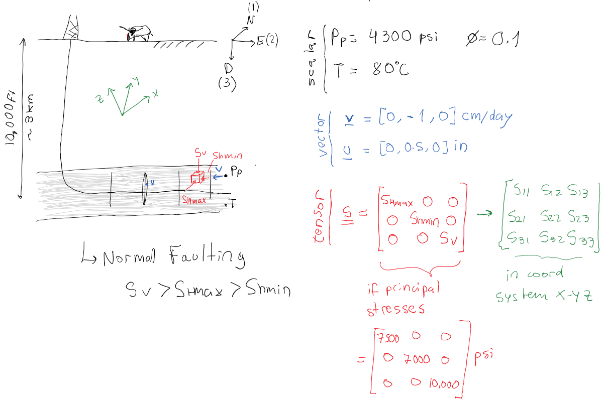 Fig. 44 Examples of scalar, vector and tensor quantities in a shale reservoir.#