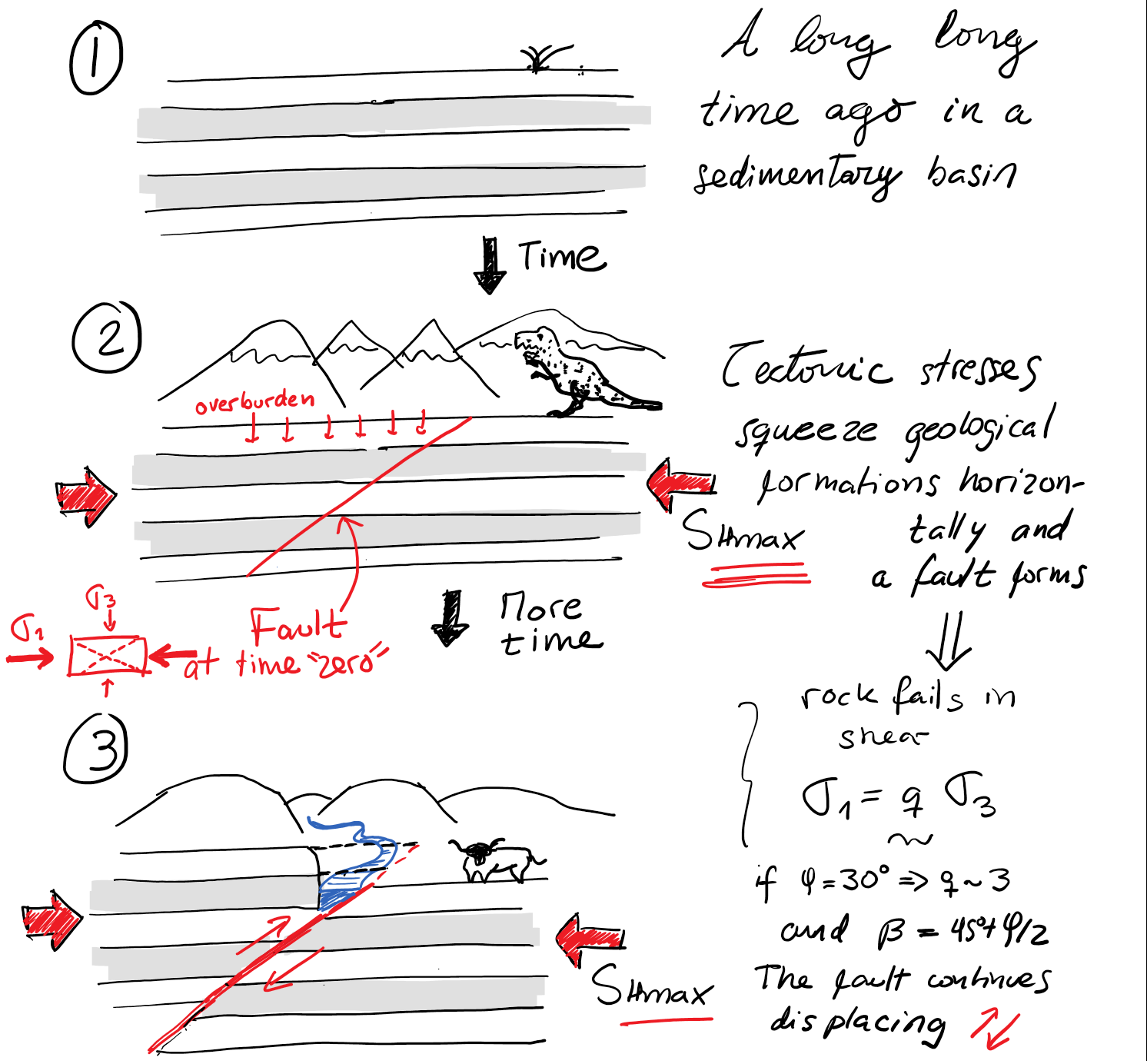 Fig. 102 Simplified schematic of the genesis of a thrust fault.#