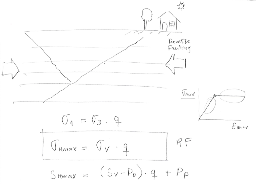 Finally, the maximum effective horizontal stress depends on the vertical effective stress (reverse faulting regime), so that