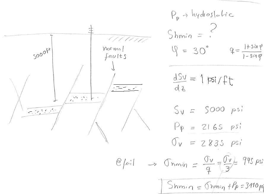 The solution is a lower bound estimation of \(S_{hmin}\) for normal faulting stress regime dictated by frictional equilibrium.