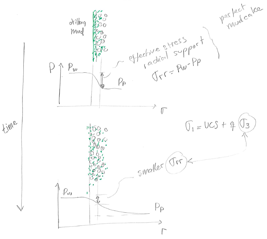 Hence, a wellbore could be stable right after drilling, but unstable after some time due to mud filtration and loss of radial stress support.