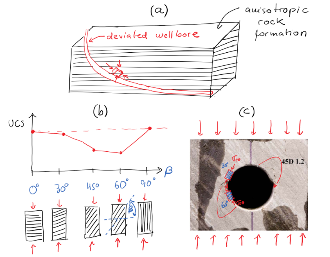 Fig. 180 Implications of rock strength anisotropy on wellbore breakouts. Image credit for (c).#