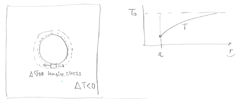 Fig. 175 Cooling \(T<T_0\) leads to stress relaxation and possibly tensile stresses on the wellbore wall.#