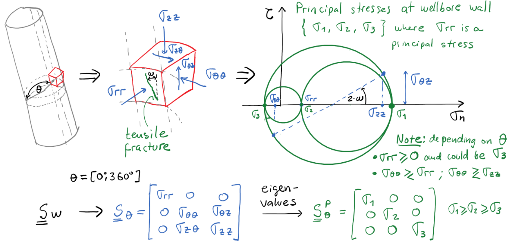 Furthermore, the wellbore stresses can be calculated from the principal stress tensor according with: