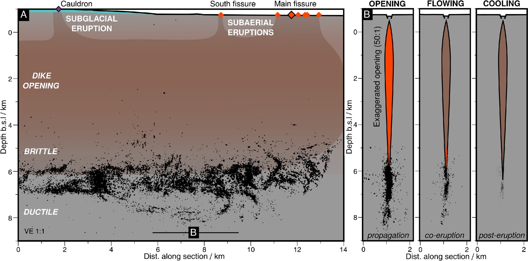 Fig. 182 Example of dyke propagation and monitoring through induced microseismicity (Image credit). An animation video of the dyke propagation is available here.#